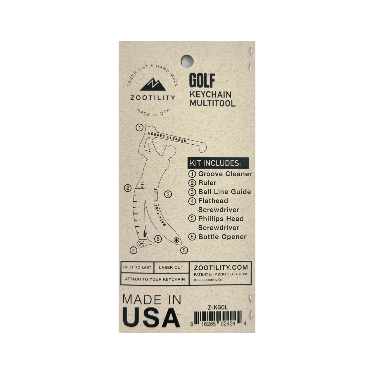 Introducing the Golf Key 6-in-1 Keychain Multi-Tool by Zootility, a must-have for every golfer's accessory collection. This handy tool, designed with an outdoor lifestyle in mind, is perfect for those unexpected moments on the golf course. Made in the USA, it reflects the craftsmanship and dedication of our talented team based in the woods of Maine. As part of our commitment to responsible manufacturing, each keychain multi-tool is built to last, ensuring it's not just a novelty, but a reliable companion for your golfing adventures. Join us on our journey to redefine everyday accessories.